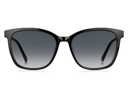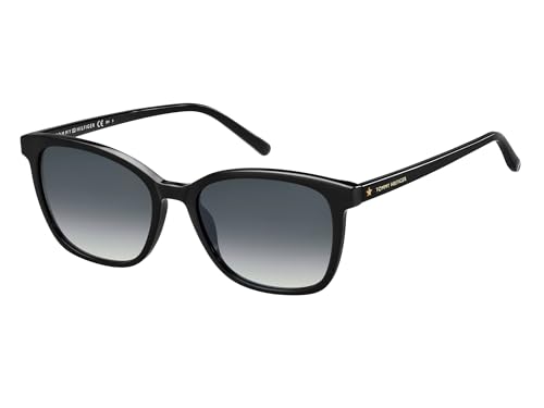 Happy Vision - نظارة شمسية عصرية مربعة للنساء من هابي فيجن بعدسات مظللة بلون رمادي داكن واطار بلاستيكي اسود، مقاس 54 - تومي هيلفيجر