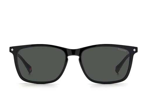 Happy Vision - نظارة شمسية مستقطبة باطار مربع للرجال من هابي فيجن، عدسات رمادية انيقة بتصميم بلاستيك اسود مقاس 55 - بولارويد