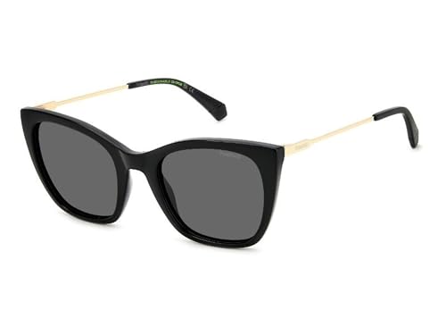 Happy Vision - نظارة شمسية انيقة بتصميم عين القطة للنساء من هابي فيجن، عدسات مستقطبة رمادية باطار بلاستيكي اسود، مقاس 52 - بولارويد