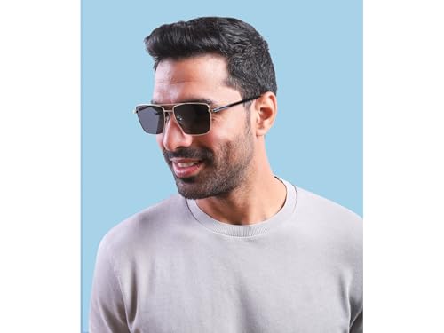 Happy Vision - نظارة شمسية فضية تحجب الاشعة فوق البنفسجية للرجال باطار معدني مقاس 56 من هابي فيجن، نظارات واقية انيقة وخفيفة الوزن - سبورتستر