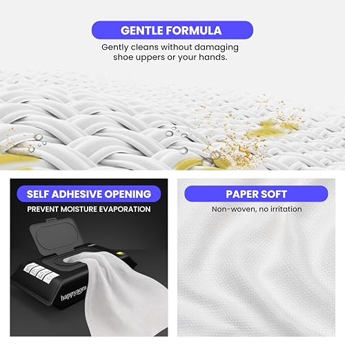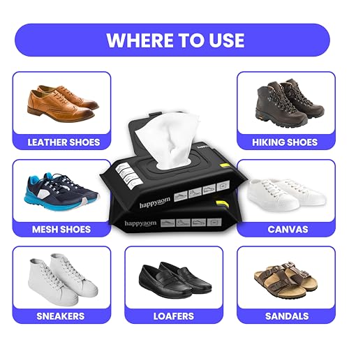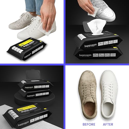 happyaom - مناديل مبللة للأحذية للاستعمال مرة واحدة، مناديل لتنظيف الأحذية الرياضية وإزالة الأوساخ والبقع من هابي هوم، عبوة من قطعتين من 60 قطعة