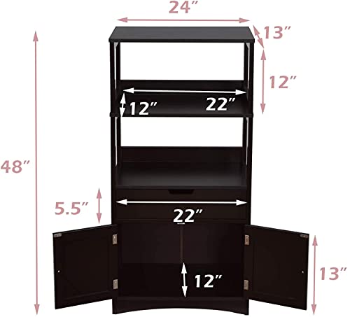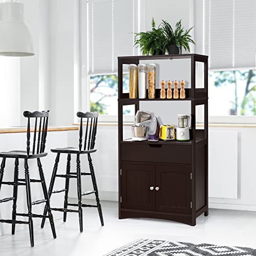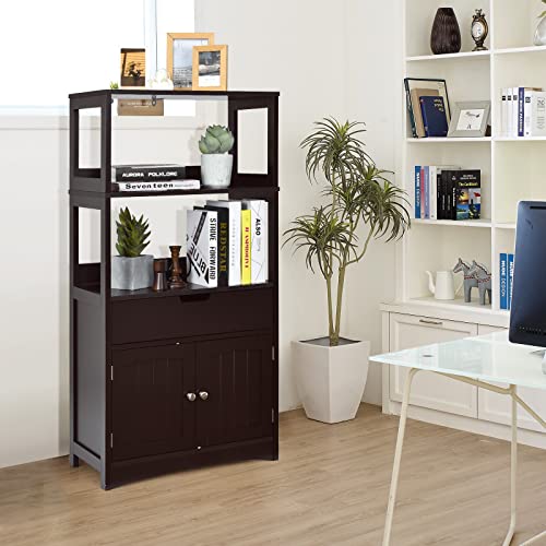 HAPPYGRILL - خزانة أرضية للحمام، خزانة تخزين أرضية للحمام مع رفين مفتوحين ودرج وباب، وآلية مضادة للانقلاب، منظم خزانة حمام مستقل لغرفة المعيشة ومدخل المطبخ من هابي جريل