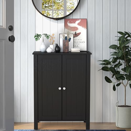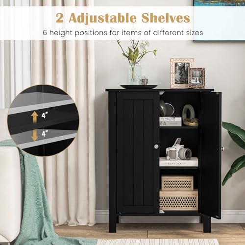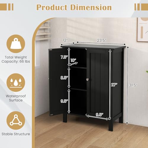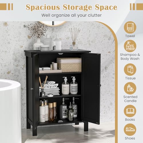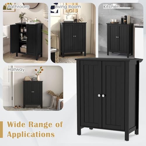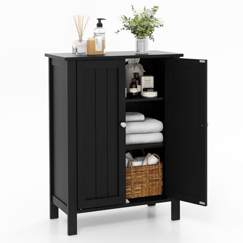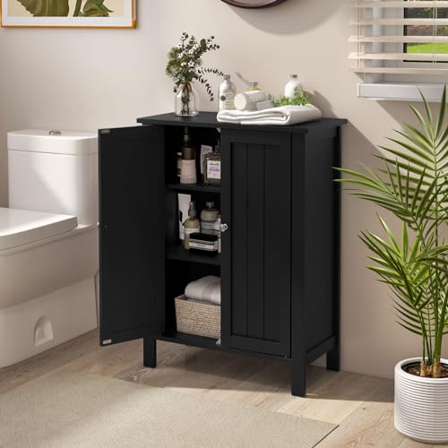 HAPPYGRILL - خزانة تنظيم تخزين قائمة بذاتها مع أرفف قابلة للتعديل وباب مزدوج، منظم خزانة حمام خشبي للحمام وغرفة المعيشة والمطبخ، دولاب أرضي من هابي جريل (أاسود)