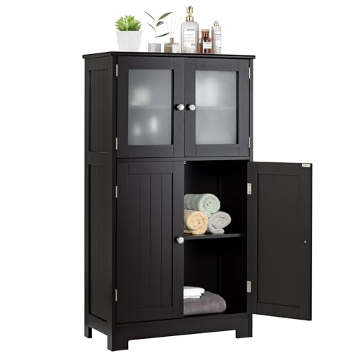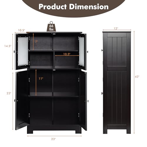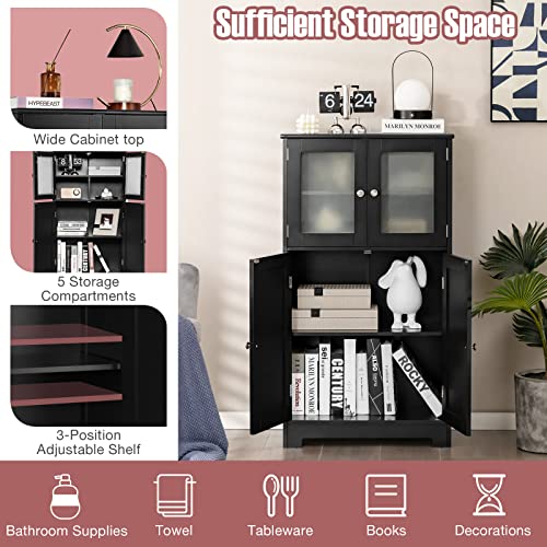 HAPPYGRILL - دولاب تخزين للحمام أرضي قائم بذاته برف قابل للتعديل مع جهاز مضاد للانقلاب، دولاب مؤن خشبي مع أبواب زجاجية للمطبخ وغرفة الطعام وغرفة المعيشة من هابي جريل