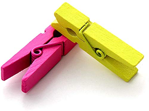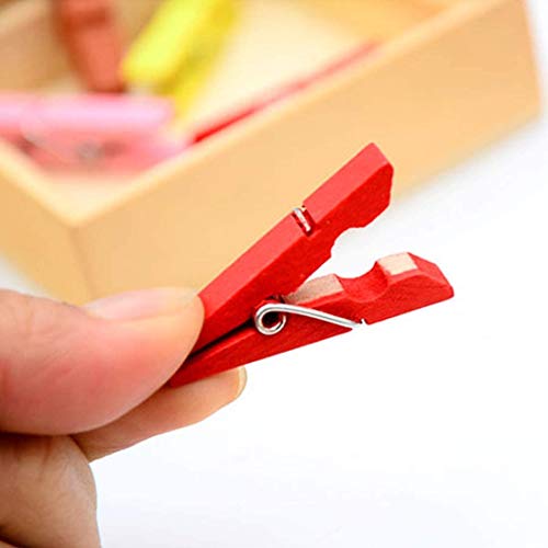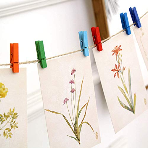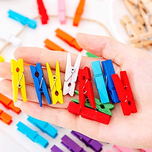 HappyHapi - مشابك صغيرة خشبية ملونة 35 ملم من 200 قطعة مع خيط من الجوت بطول 30 متر للملابس والصور، مشابك صور صغيرة بـ 10 الوان لورق الصور والبطاقات والحرف اليدوية والديكور من هابي هابي