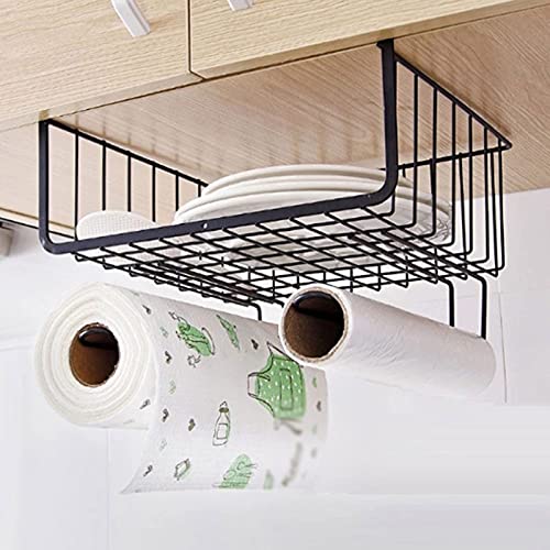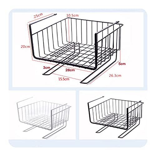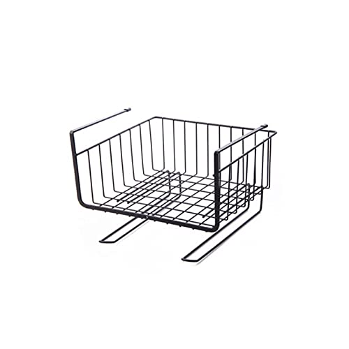 Happystar - سلة تخزين ادوات المائدة للمطبخ من هابي ستار، سلة تخزين معلقة تحت الرف، سلة من الحديد لتنظيم ادوات المائدة مع خطاف مطاطي (اللون: اسود 2)، معدن