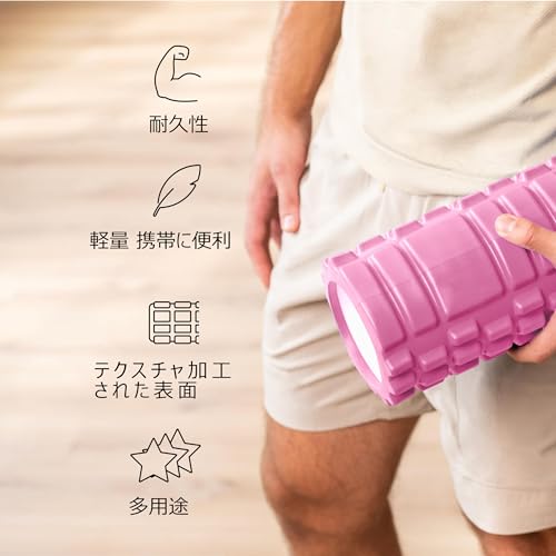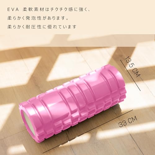 Haquno - بكرة فوم إسفنجية شبكية لتحرير اللفافة العضلية، عمود يوجا، بكرة فوم للتدريب والرياضة وتمارين اللياقة البدنية والتمدد من هاكونو (لون زهري)