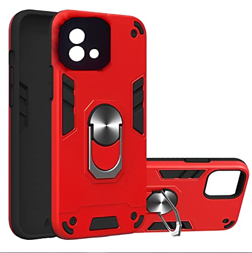 Generic - جراب خلفي صلب بحلقة معدنية ومسند لموبايل ريلمي C20 (احمر)