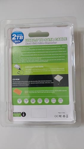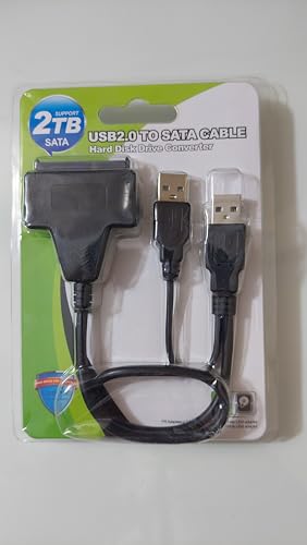 Generic - كابل محول USB 2.0 إلى SATA من Hard Disk Drive Converter يدعم هارد ديسك حتى 2 تيرا بايت 2TB متوافق مع أقراص 2.5 و 3.5 بوصة و CD-ROM مزود بوصلة طاقة USB مزدوجة