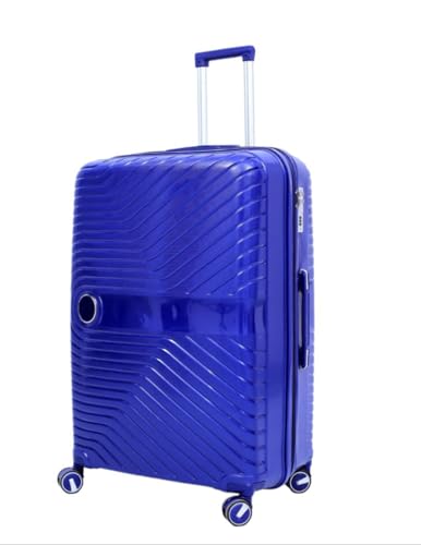 Generic - شنطة سفر دوارة صلبة مقاس 30 انش، لون ازرق رويال، تصميم بنمط مموج، 4 عجلات