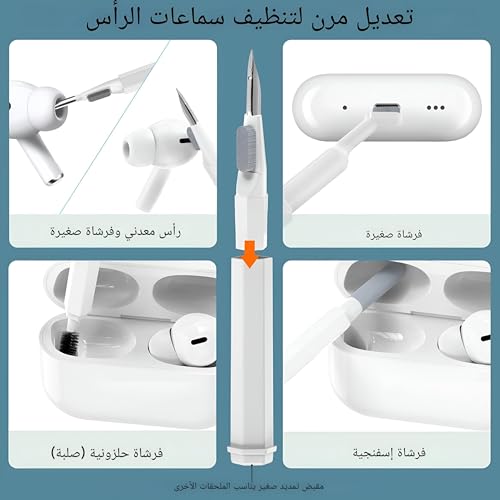 - مزودة بقلم تنظيف مخصص لسماعات الرأس يتميز بطرف معدني لإزالة الأوساخ العميقة وفرش صغيرة لتنظيف شبكة سماعة الرأس والمكونات الداخلية، بالإضافة إلى مقبض ممتد لسهولة الإمساك، مما يضمن توفير صيانة شاملة للملحقات الصوتية.