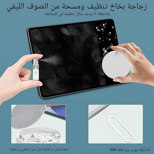 - تتميز بأداة مساعدة لتنظيف الشاشة، بما في ذلك بخاخة مملوءة بمحلول تنظيف وقطعة قماش من المايكروفايبر لإزالة البقع الزيتية وبصمات الأصابع من الشاشات الإلكترونية، إلى جانب بلاور لنفخ الغبار من المساحات الضيقة وقلم بوسادة ناعمة لعدسات الكاميرا.