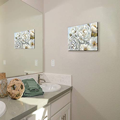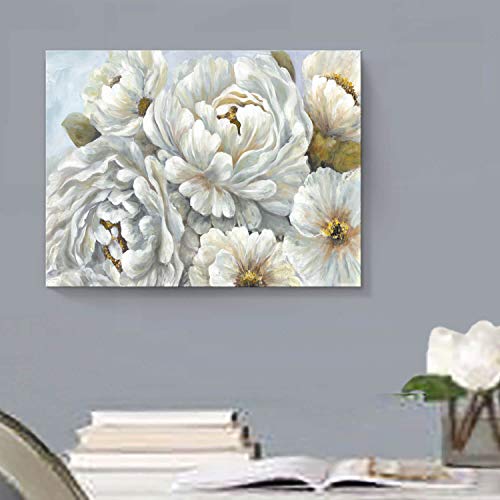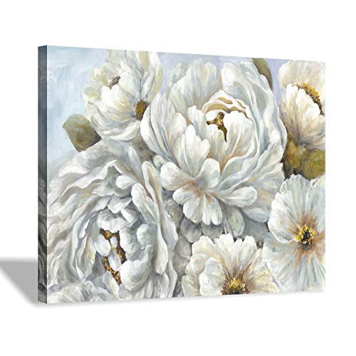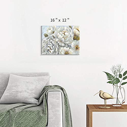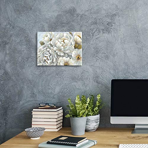 Hardy Gallery - هاردي جاليري لوحة فنية جدارية بتصميم زهور الفاوانيا: لوحة فنية من القماش بتصميم زهور بيضاء لغرفة النوم (16 انش × 12 انش × لوحة واحدة)