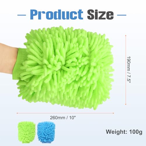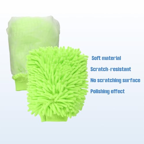 - المقاس - مقاس قفازات غسيل السيارات: 260 ملم × 190 ملم / 10 انش × 7.5 انش، الوزن: 100 غرام. تم تصميم قفازات غسيل السيارات لتناسب أي نوع من أنواع اليد، والأساور المطاطية تثبت القفازات بإحكام على يديك وليس من السهل سقوطها.