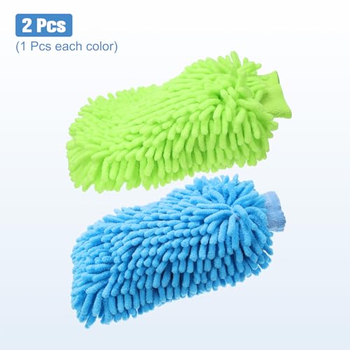 HARFINGTON - قفازات غسيل السيارات المصنوعة من المايكروفايبر من قماش الشانيل من هارفينجتون مقاس 10 انش × 7.5 انش، قفازات غسيل مضادة للخدش، قفازات ماصة مزدوجة الجوانب، قفازات تجفيف لغسيل السيارات وتنظيف المنزل، ازرق