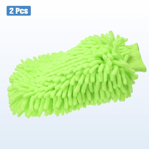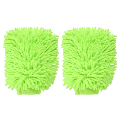 HARFINGTON - قفازات غسيل السيارات المصنوعة من المايكروفايبر من قماش الشانيل من هارفينجتون مقاس 10 انش × 7.5 انش، قفازات غسيل مضادة للخدش، قفازات ماصة مزدوجة الجوانب، قفازات تجفيف لتنظيف السيارة والمنزل، اخضر