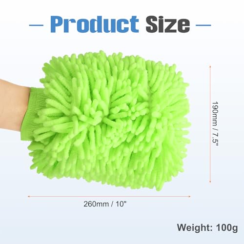 - المقاس - مقاس قفازات غسيل السيارات: 260 ملم × 190 ملم / 10 انش × 7.5 انش، الوزن: 100 غرام. تم تصميم قفازات غسيل السيارات لتناسب أي نوع من أنواع اليد، والأساور المطاطية تثبت القفازات بإحكام على يديك وليس من السهل سقوطها.