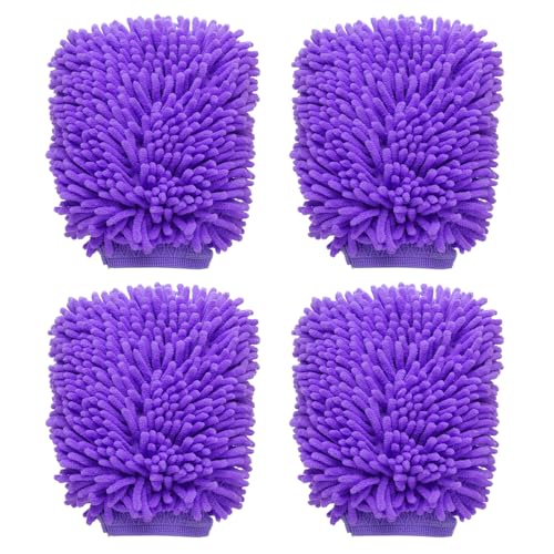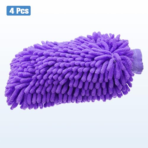 HARFINGTON - 4 قطع من قفازات غسيل السيارات المصنوعة من المايكروفايبر والشانيل من هارفينجتون 10 انش × 7.5 انش، قفازات غسيل خالية من الخدوش، قفازات ماصة مزدوجة الجوانب، قفازات تجفيف لغسيل السيارات وتنظيف المنزل