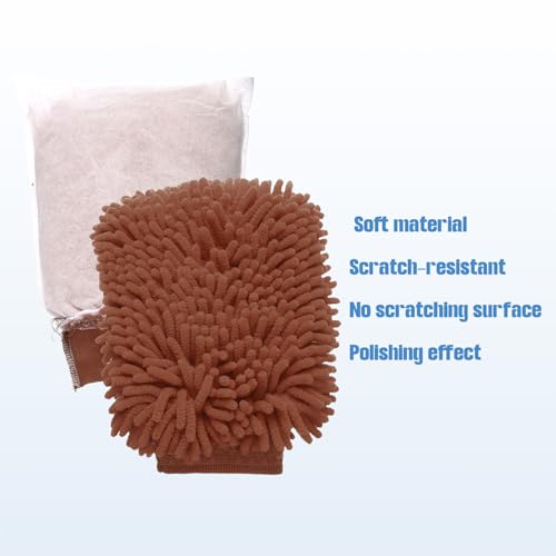 - المادة - قفازات غسيل السيارة مصنوعة من نايلون الثلج فائق النعومة، وهو مقاوم للخدش، لا يمكن أن يحقق أي وبر أو خدوش ولن يتلف السطح، ويوفر تأثير تلميع.