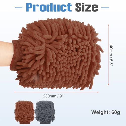 - المقاس - مقاس قفازات غسيل السيارات: 230 ملم × 140 ملم / 9 انش × 5.5 انش، الوزن: 60 غرام. تم تصميم قفازات غسيل السيارات لتناسب أي نوع من أنواع اليد، والأساور المطاطية تثبت القفازات بإحكام على يديك وليس من السهل سقوطها.
