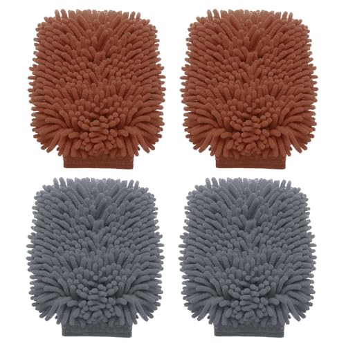 HARFINGTON - قفازات غسيل السيارات المصنوعة من المايكروفايبر والشانيل من هارفينجتون من 4 قطع، 9 انش × 5.5 انش، قفازات غسيل خالية من الخدوش، قفازات ماصة مزدوجة الجوانب، قفازات تجفيف لغسيل السيارات وتنظيف المنزل