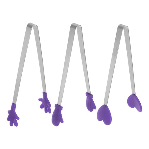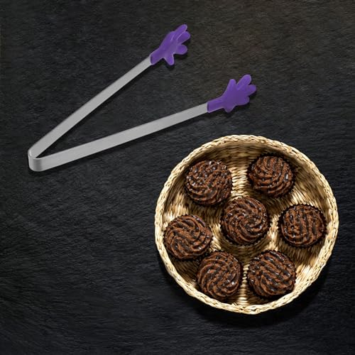 HARFINGTON - مساكة طعام صغيرة بنمط منقوش ستانلس ستيل بأطراف سيليكون، مساكة طبخ صغيرة للمطبخ وتقديم الطعام للطبخ والشواء من هارفينجتون، 14 سم، أرجواني