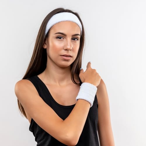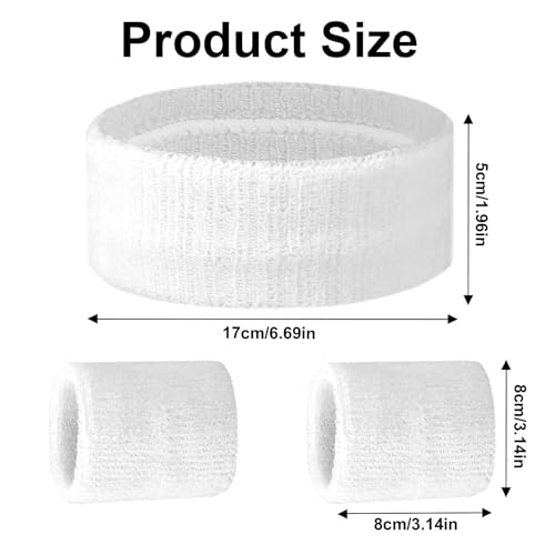 Hariendny - مجموعة اساور معصم رياضية من 3 قطع من هاريندني، تتضمن عصابة راس رياضية واحدة و2 سوار معصم جيد التهوية من قماش تيري للرجال والنساء (ابيض)
