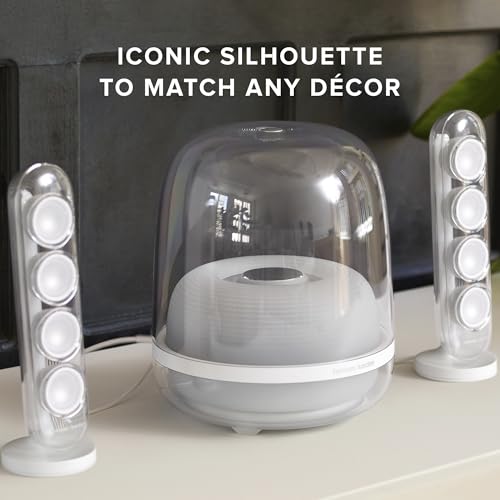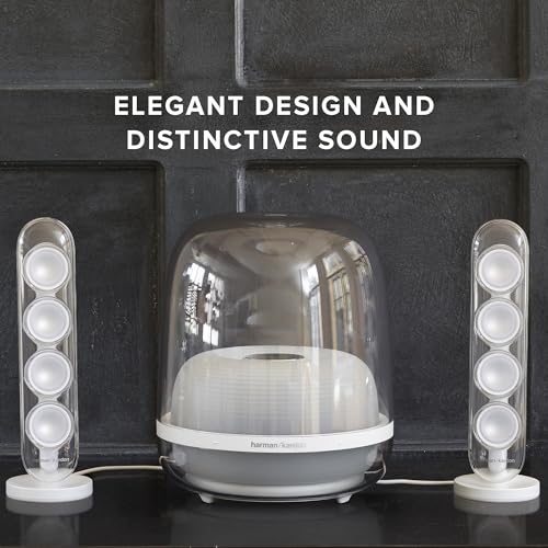 Harman Kardon - نظام مكبّرات صوت مكتبية بلوتوث مكون من مكبّرين جانبيين 4 وحدات صوتية في كل مكبر من هارمان كاردون، لون أبيض