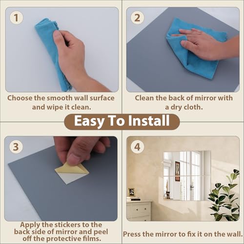 - سهلة التركيب: مجهزة بشريط إسفنجي قوي ذاتي اللصق، هذه المرايا الجدارية سهلة التركيب بشكل لا يصدق. للحصول على أفضل النتائج، تأكد من أن السطح خالٍ من الغبار أو الحطام. بعد التثبيت، لا تتحرك حسب الرغبة