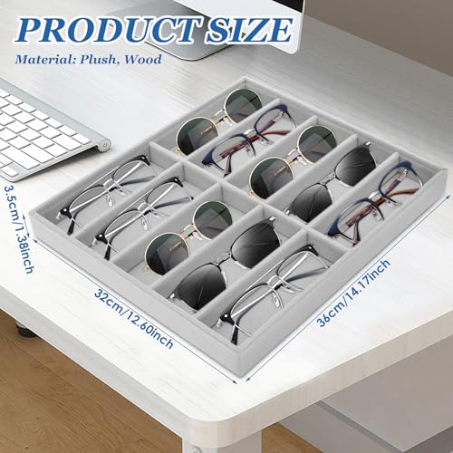 harupink - علبة تخزين نظارات شمس مصنوعة من خشب مغطى بطبقة قطيفة ناعمة، مقاومة للخدوش والتلف، تتسع لـ10 نظارات شمس، علبة مجوهرات أنيقة لتنظيم الاكسسوارات والمقتنيات من هاروبينك