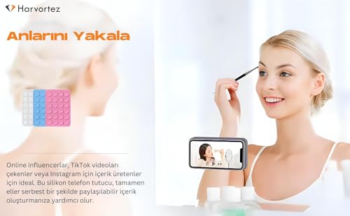 - مثالي للمبدعين أو عشاق صانعي المحتوى على تيك توك وانستجرام ويوتيوب، حيث يساعدك حامل الموبايل المزود بقاعدة لاصقة على التقاط تلك اللحظات التي لا تنسى بسهولة لمشاركة وصناعة المحتوى الرائع. كما أنه مفيد للاستخدام في المطبخ والجيم ودروس الرقص ومكالمات الفيديو ومشاهدة الفيديو والاستوديو والحمام وأكثر من ذلك.