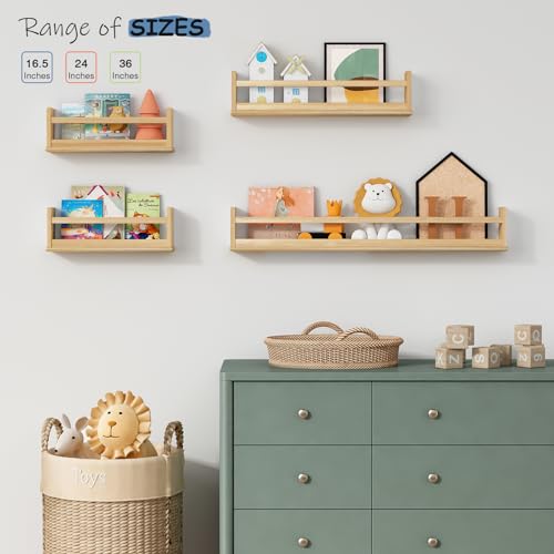- [تصميم جديد 2: أرفف لغرف الأطفال مع مساند كتب عالية] يحتوي رف كتب الأطفال المثبت على الحائط على أطراف كتب بارتفاع 6 انش في كلا الجانبين. يمكن أن تمنع الميزة الخاصة الكتب المصورة للأطفال من الانقلاب من جانب إلى آخر أو السقوط.