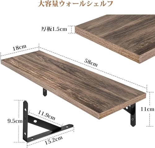- (رف حائط سهل التركيب) تتضمن المجموعة لوحين و4 دعامات معدنية و9 مسامير طويلة و9 مسامير قصيرة 4 سم و9 مثبتات للجدران الجافة و9 مثبتات جدارية رفيعة ودليل تعليمات باللغة اليابانية. توجد 4 فتحات صغيرة في الجزء السفلي من اللوحة لسهولة التركيب من قبل أي شخص.