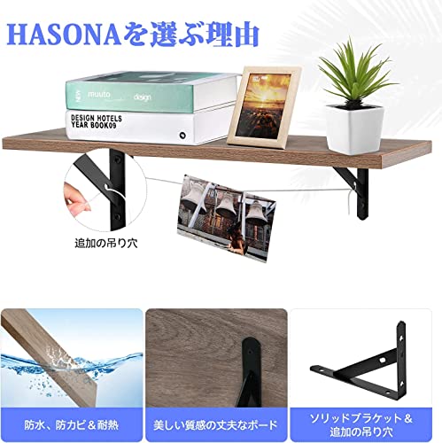HASONA - رف حائط مقاوم للماء والعفن ، طارد للحشرات وناعم وأنيق وخشبي للمدخل من هاسونا، مقاس عرض 58 سم × عمق 18 سم (قطعتان)