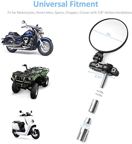 Brandless - مقود موتوسيكل دائري 7/8 22 ملم مع مراية جانبية للرؤية الخلفية لتشوبر كروزر من حسن اولد، أسود