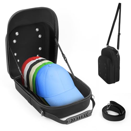 Kicyosl - حقيبة سفر لقبعات البيسبول، حقيبة قبعة مطورة مع مقبض حمل، حزام كتف وحزام للامتعة، منظم قبعات لـ 6 قبعات بيسبول، حقيبة سفر مثالية للسفر والمنزل (رترو)