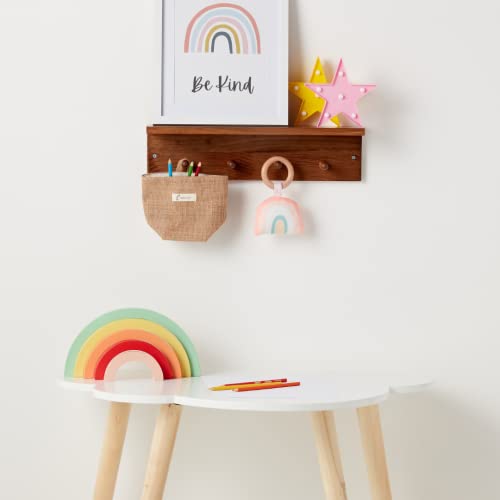- ⭐تخزين بسيط وفعال - رف تخزين خشبي صغير متعدد الأغراض مع 4 خطافات معطف لأي غرفة في المنزل، حتى غرفة نوم الأطفال أو غرفة اللعب. مثالية لتعليق المفاتيح والمعاطف وفساتين الملابس وألعاب الأطفال وأدوات المطبخ ومناشف الشاي وأكثر من ذلك بكثير! يمكن استخدام رف الحافة متعدد الوظائف مع الأوتاد لعرض الصور أو كرف توابل في المطبخ أو كتخزين للحمام لجميع ضرورياتك!