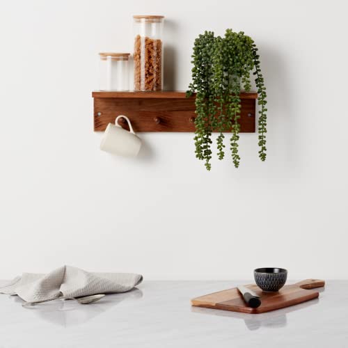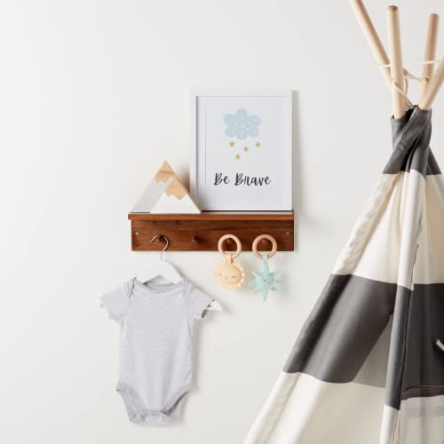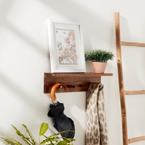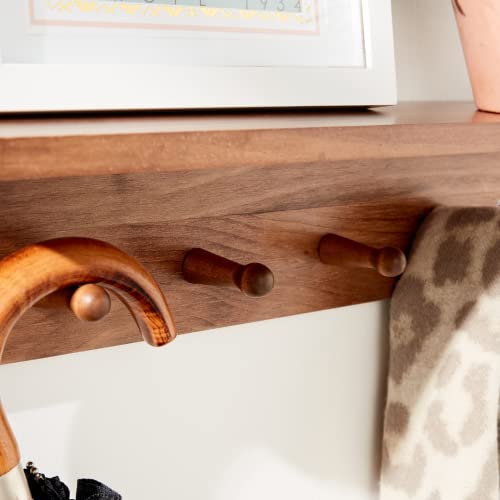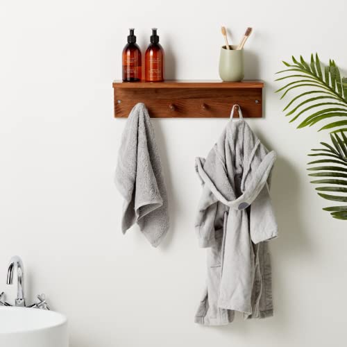 Haus Projekt - رف من خشب صنوبر ملون مع 4 مساند عصا عمودية أرفف خشبية عائمة خطافات معاطف مثبتة على الحائط حامل للمعاطف وحدة تخزين للحمام شماعة ملابس غرفة النوم مفاتيح 45 سم × 11.5 11.5 هاوس بروجيكت بني