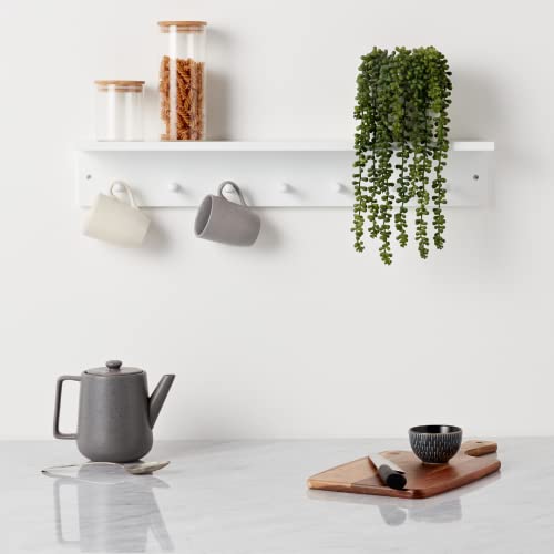 Haus Projekt - رف حائط من هاوس بروجيكت مع خطافات معاطف 7 اوتاد عائم خشبية للتخزين في الردهة المعاطف المفاتيح المناشف تخزين المطبخ 72 × 11.5 11.5 سم ابيض صنوبر