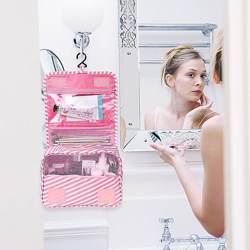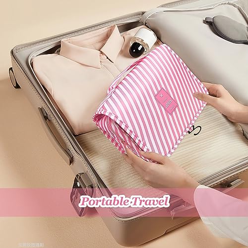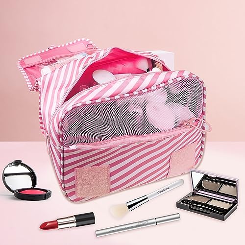 hautllaif - شنطة تنظيم اساسية للسفر للنساء من هاوتلايف ادوات الزينة متعددة الوظائف مستحضرات تجميل محمولة مقاومة للماء مخططة رقعة بريبي