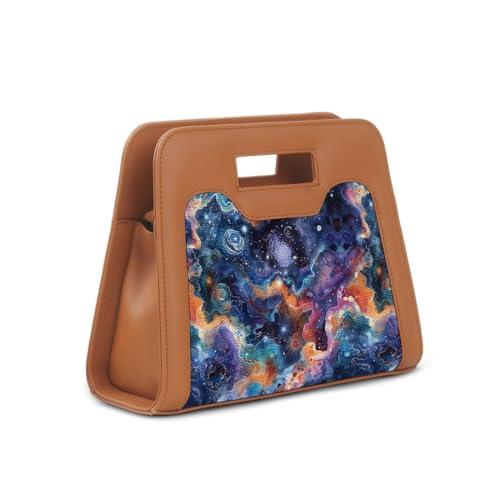 Generic - شنطة يد انيقة من هافانا بتصميم مجرة وحواف من الجلد بلون بني، شنطة كتف بمقبض