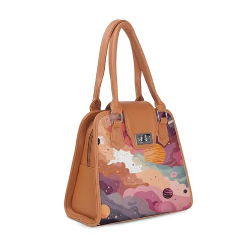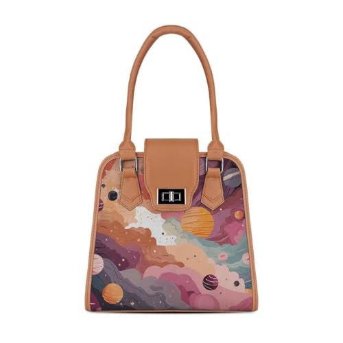 Generic - حقيبة هافانا ميتروبوليتان تشارم، تصميم كوزميك دريمز، حقيبة يد مزخرفة بلون بيج داكن مع طباعة المجرة