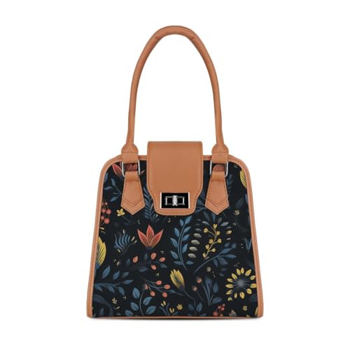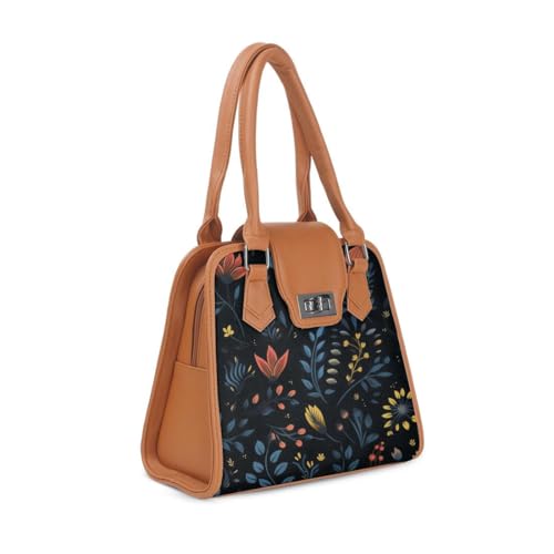 Generic - شنطة يد بطبعة زهور من هافانا متروبوليتان، حافة بيج داكن، ازرق كحلي مع نمط نباتي متعدد الالوان