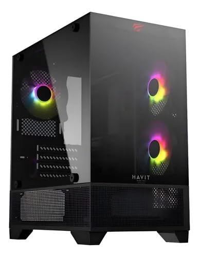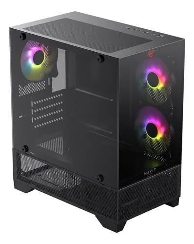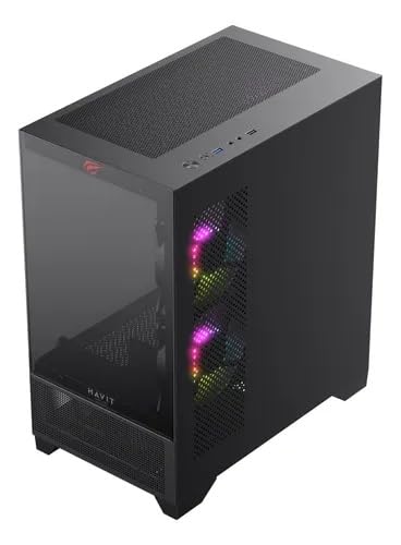 havit - حافظة كمبيوتر العاب هافيت CF923 RGB - ميد تاور ATX/Micro‑ATX/Mini‑ITX، لوحة جانبية من الزجاج المقوى، دعم مروحة متعددة / رادياتير واتصال USB 3.0 امامي