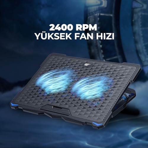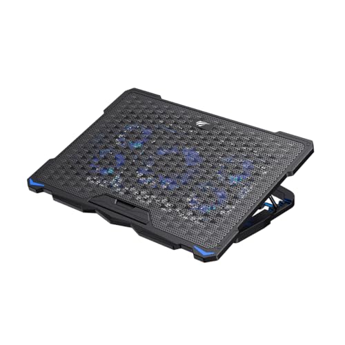havit - قاعدة تبريد للابتوب الالعاب من هافيت موديل F2076، بـ4 مراوح صامتة واضاءة الفضاء اللوني ار جي بي، للابتوب مقاس 12-17 بوصة، بلون اسود