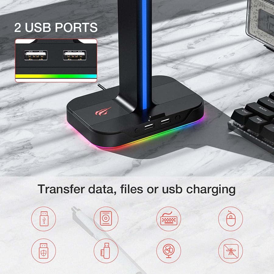 XADITON - حامل مزدوج لسماعة الرأس بمنفذين USB وإضاءة RGB من هافيت جيم نوت TH650