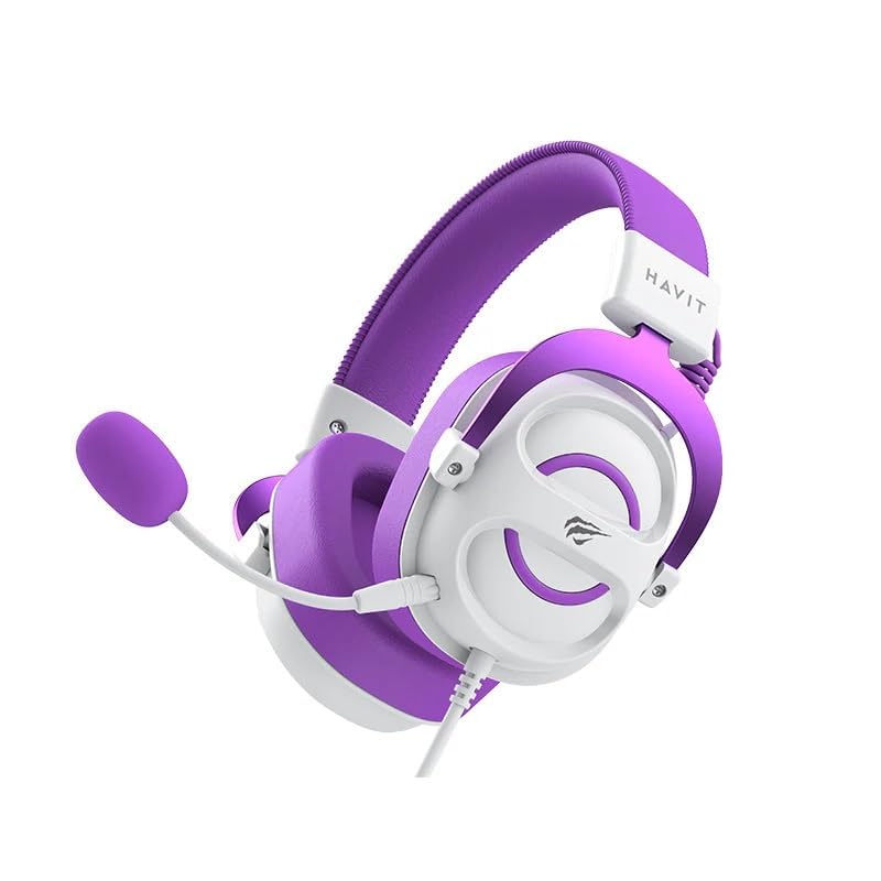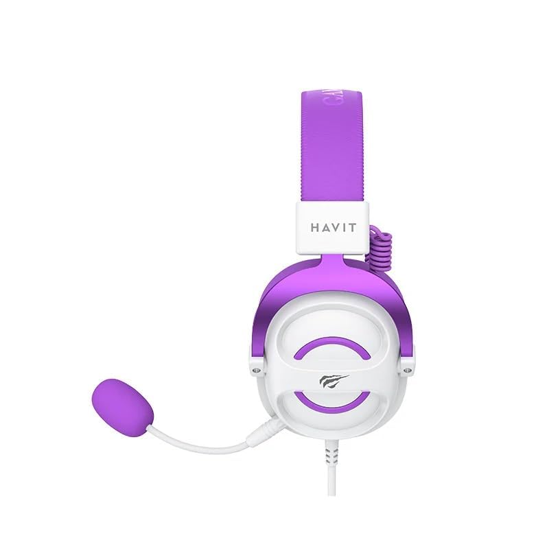 havit - سماعة رأس للألعاب من هافيت، أرجواني/أبيض، H2002E، سلكي، فوق الأذن