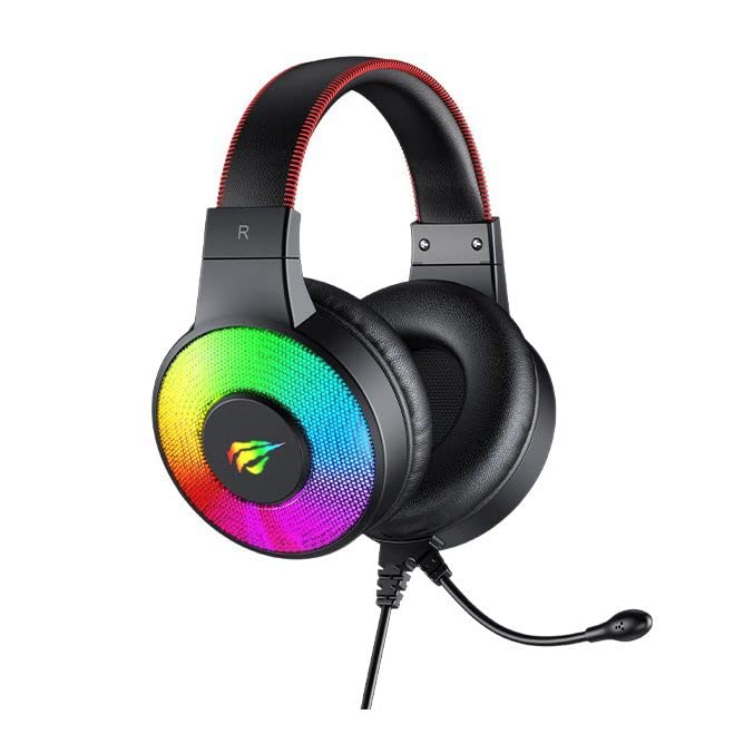 havit - سماعة فوق الأذن سلكي العاب H2013D مع ستيريو محيطي 50 ملم واضاءة RGB رائعة من هافيت، اسود
