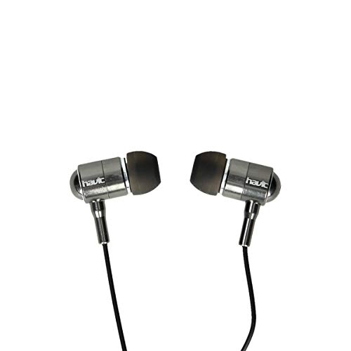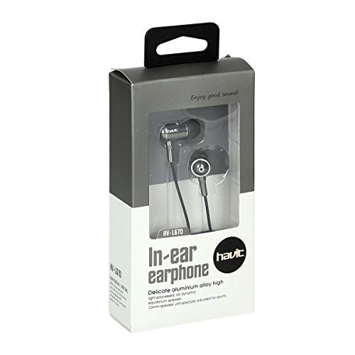 havit - سماعات هافيت HV-L670، خفيفة الوزن في الاذن بحجم 10 ملم ومناسبة اثناء الرياضة بفضل سماعاتها الديناميكية اكويلبريم، باللون الرمادي، سلكي