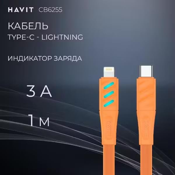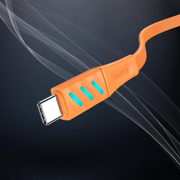 havit - كابل نوع سي إلى لايتنينج يدعم تقنية الشحن السريع بقيمة 30 واط مع إضاءة ليد بطول 1 م، برتقالي من هافيت